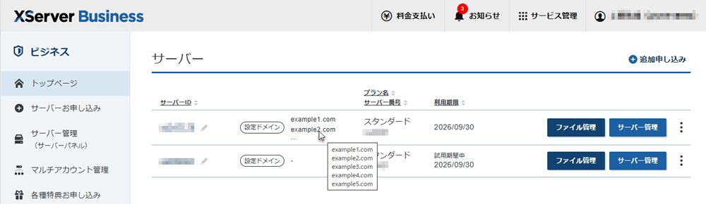 「XServerアカウント」のUI(ユーザーインターフェース)を改善しました。
